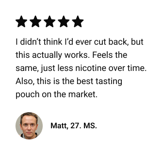 Over time, shift more of your pouches to lower strengths or 0.0 mg Blanks to reduce your total daily nicotine consumption.